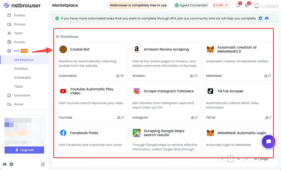 Free RPA Functions. Nstbrowser provides powerful RPA functions for data collection and automation, which can help you automate data collection.