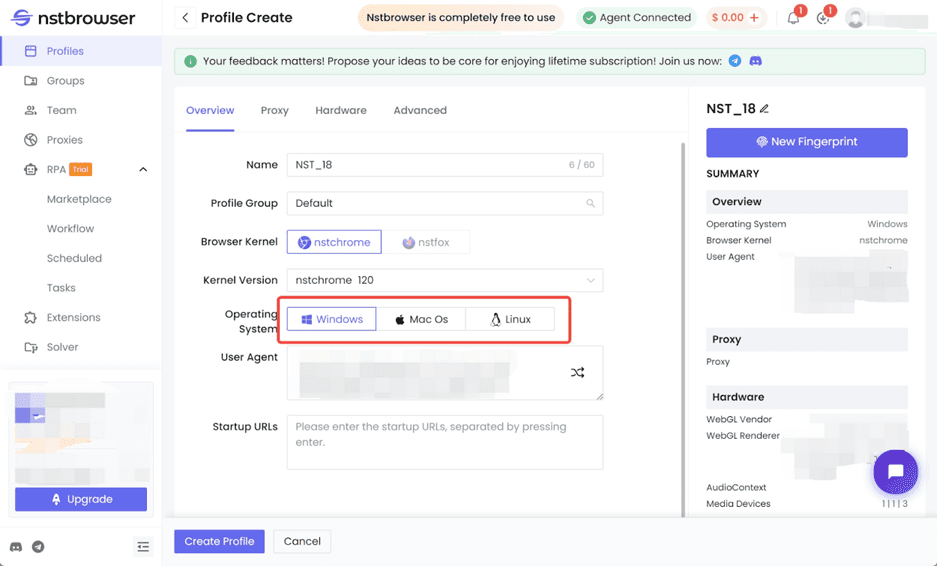 Nstbrowser creates authentic browser fingerprints and is even compatible with Windows, Mac, and Linux systems. We also offer browser kernels based on Chrome and Firefox for greater account undetectability. In addition, Nstbrowser's ability to automate rotating proxy allows you to determine the most effective proxy for a specific target, reducing the chances of your activity being tracked or blocked.